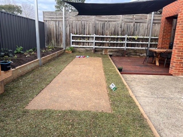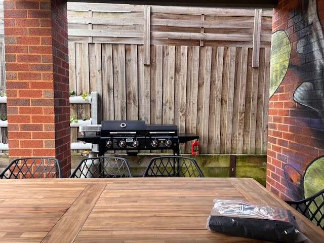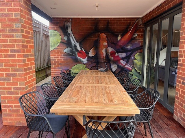 Outdoors, the area was completely revitalised with a brand-new BBQ setup, shaded seating, a communal table, and a productive green space complete with a veggie patch and suspended garden.